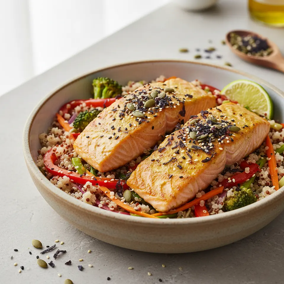 Golden Glow Salmon & Quinoa Nourish Bowl with Ocean's Whisper Crunch