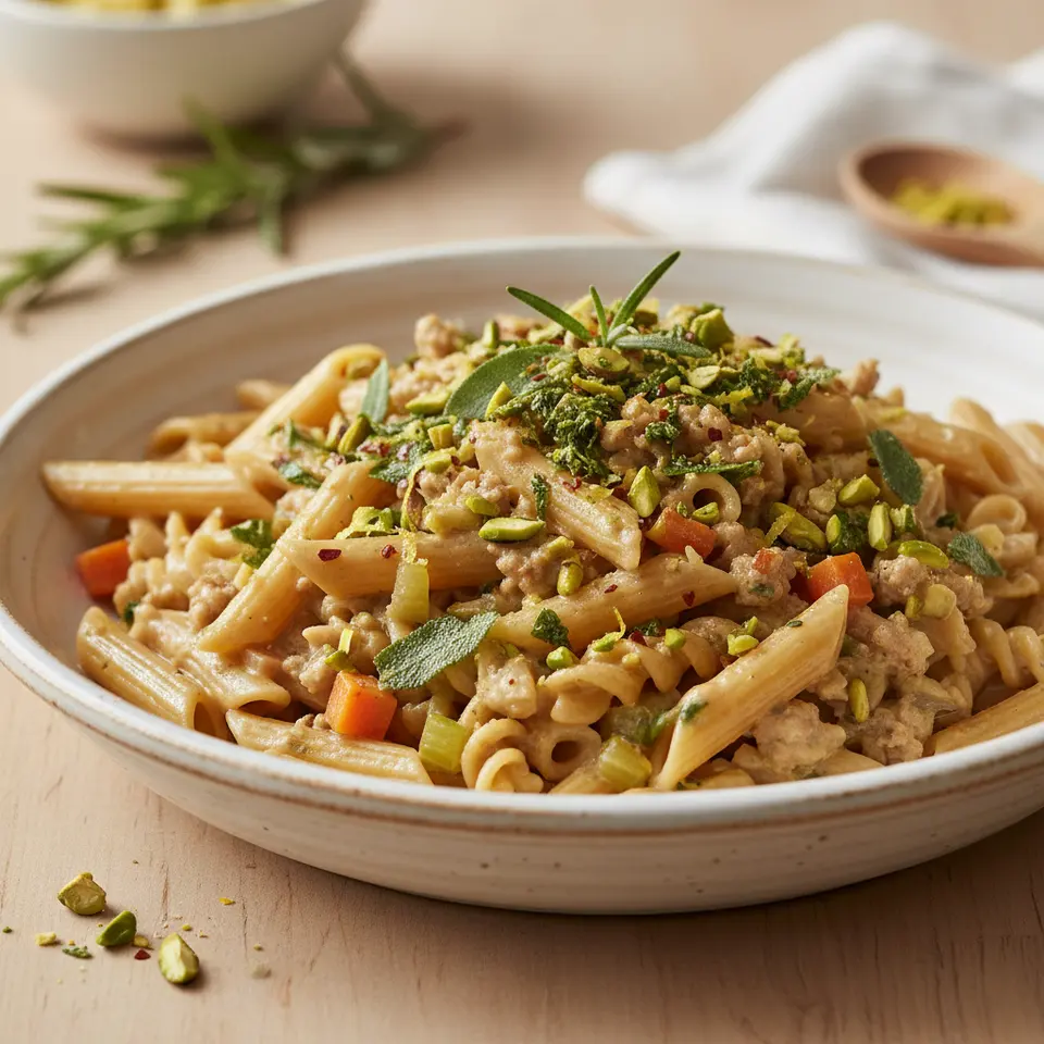 Golden Hearth Turkey & Parsnip Penne with Aromatic Sage-Pistachio Gremolata