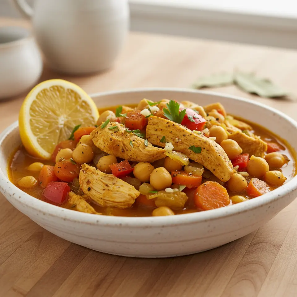 - Add the rinsed chickpeas and diced zucchini. Reduce heat to low, cover, and simmer for 15-20 minutes, or until chicken is cooked through and vegetables are tender-crisp.