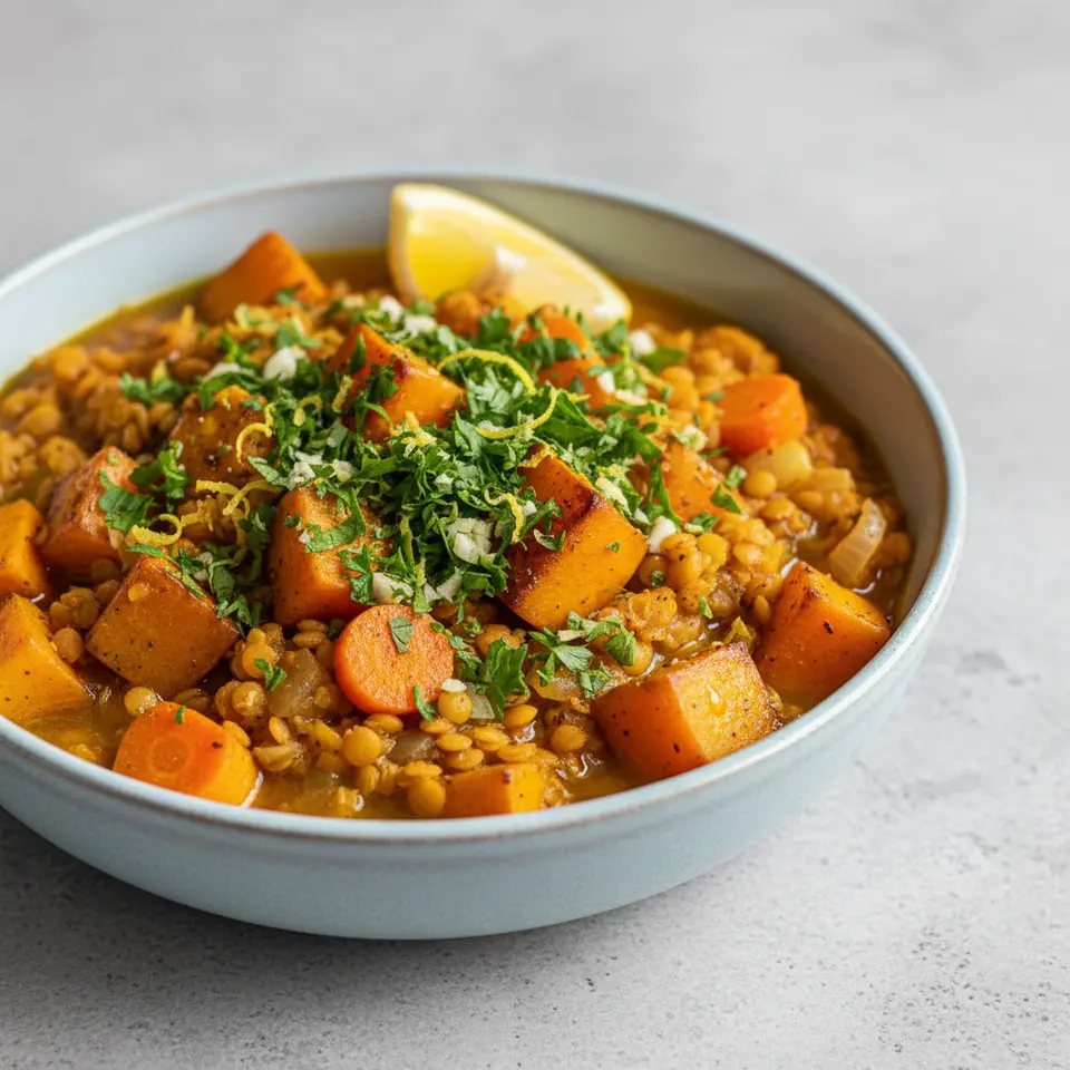 Golden Turmeric Lentil & Roasted Butternut Squash Stew with Lemon-Herb Gremolata