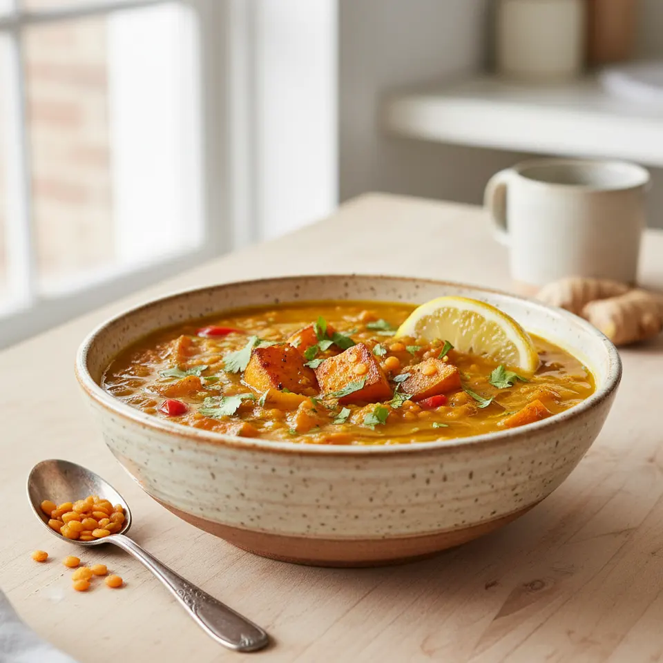 - Add the rinsed red lentils and diced sweet potato to the pot. Reduce heat to low, cover, and simmer for 20-25 minutes, or until lentils and sweet potato are tender.
