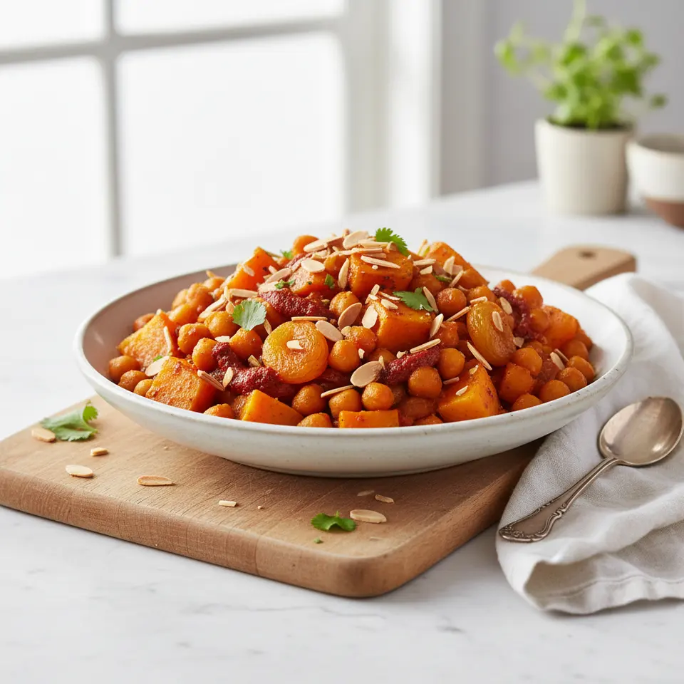 Harissa-Spiced Butternut Squash & Chickpea Tagine with Toasted Almonds