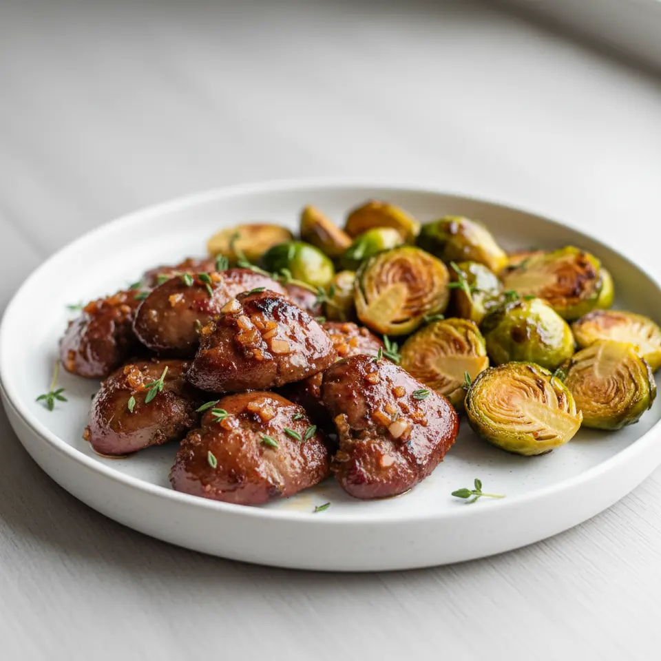 Honey-Garlic Glazed Chicken Liver with Balsamic Roasted Brussels Sprouts