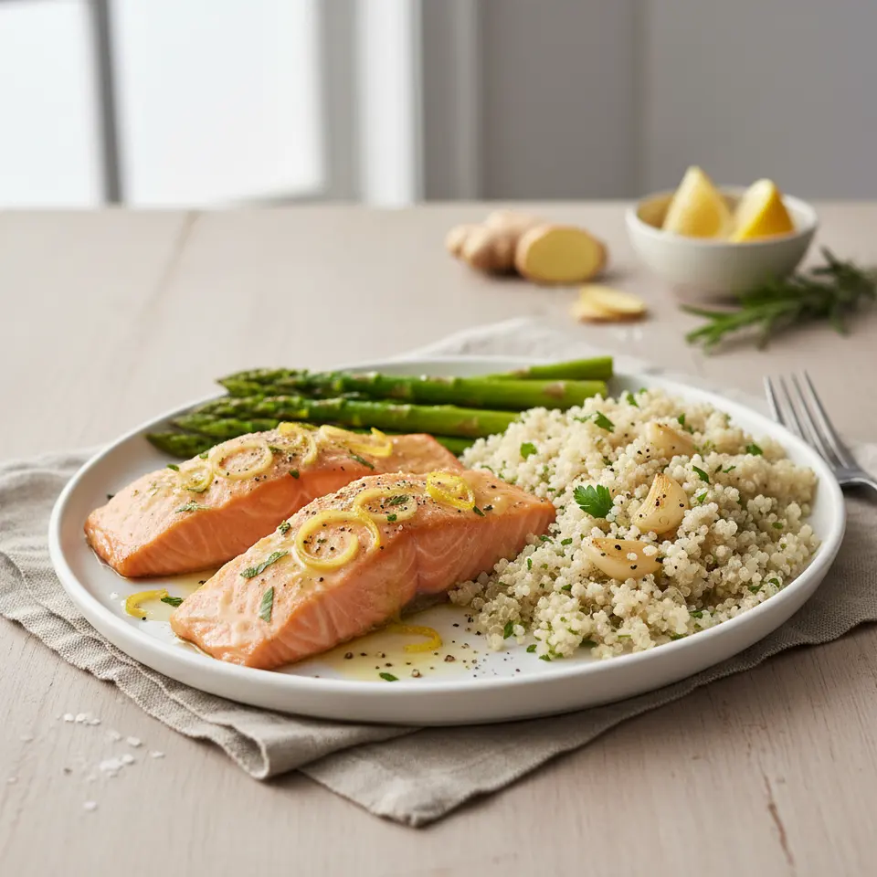 Lemon-Ginger Salmon with Roasted Asparagus and Quinoa