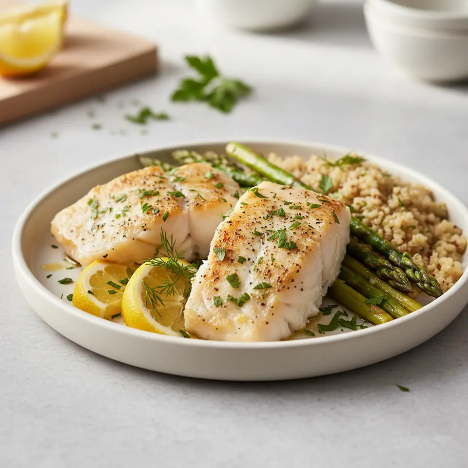 Lemon Herb Baked Cod with Asparagus and Quinoa