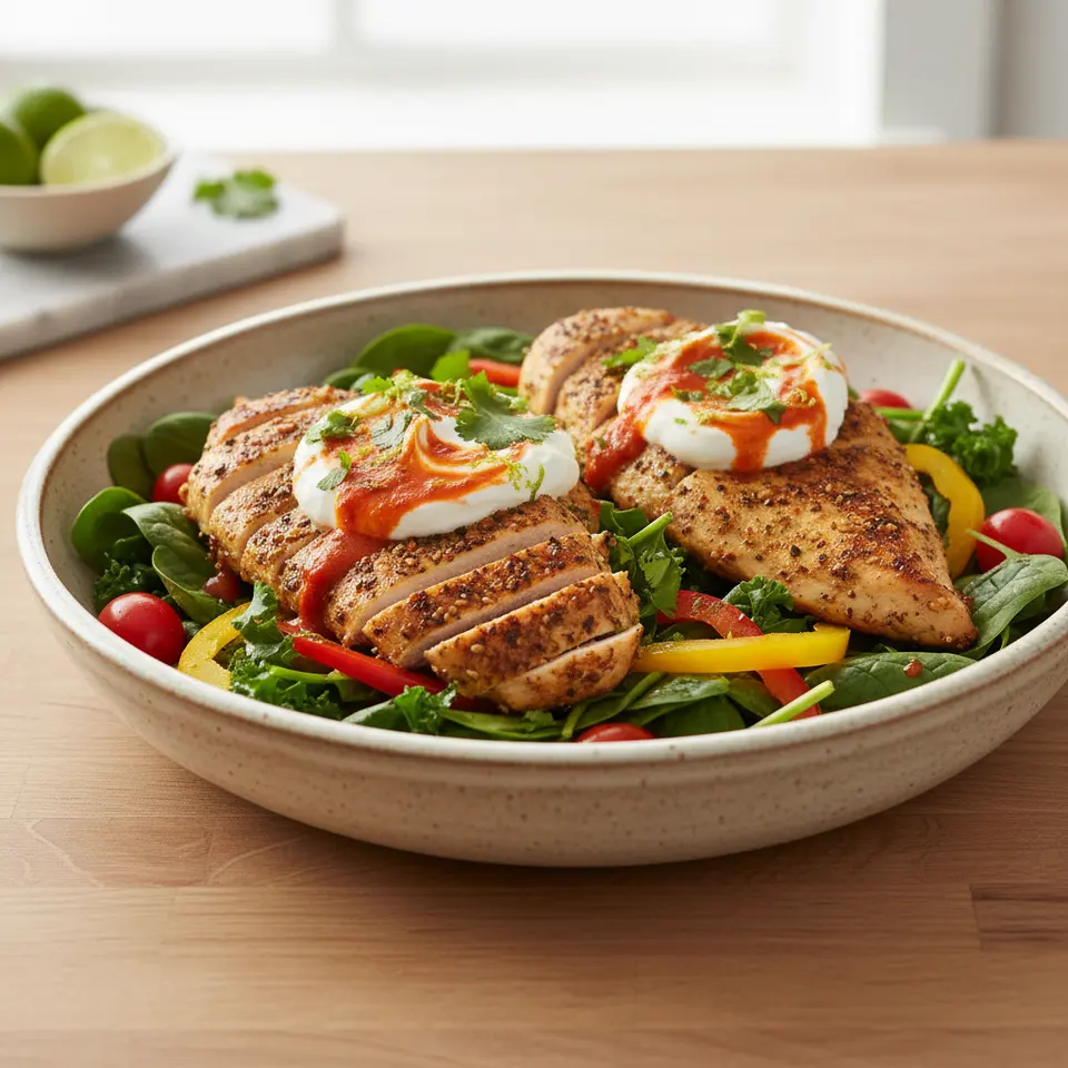 Moroccan Spiced Chicken with Harissa-Lime Yogurt & Wilted Greens
