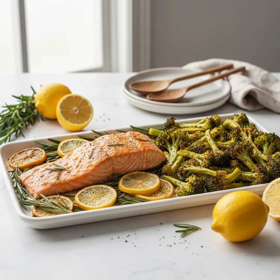 Rosemary-Lemon Baked Salmon with Turmeric-Roasted Broccoli