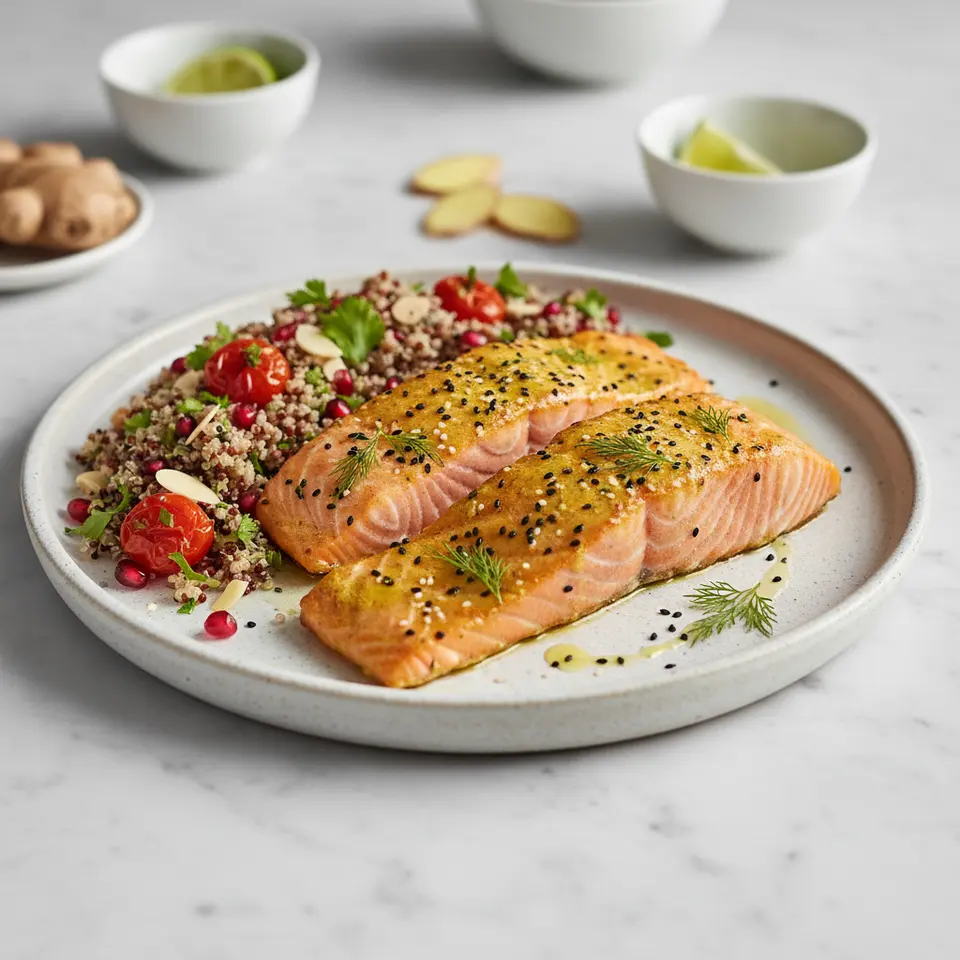 Turmeric-Ginger Baked Salmon with Antioxidant Quinoa