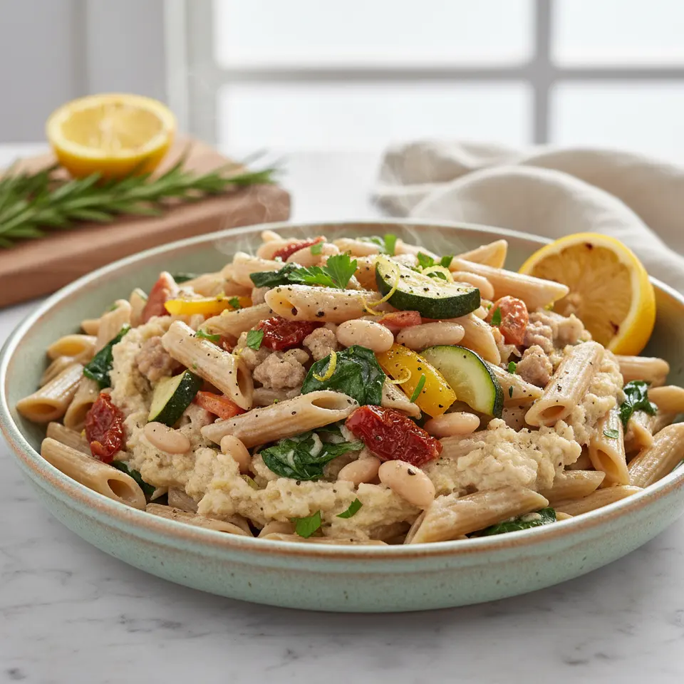Tuscan Harvest Penne with Lemony-Herb Turkey & White Bean Embrace